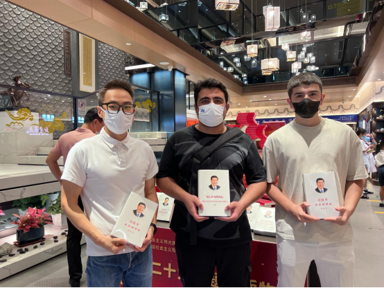 在共读活动期间,师生们与广大读者进行了学习心得的交流,共读活动也受到广州电视台媒体记者的关注,其中参加活动的伊朗籍员工贝瀚(BEIKVERDY SYAVASH)和乌兹别克斯坦籍员工阿力(KHUJAEV SAIDMUKHAMMADALOKHON)接受了电视台的采访。采访中两名员工表示来到广州学习生活以后,见证了许多巨大的变化,特别是基础设施方面。通过阅读《习近平谈治国理政》了解到21世纪政府的理想是什么,中国人民对新世纪的期许是什么,将来的计划是什么。通过公司组织的共读活动,结合自己的专业,将会着重关注与中国金融方面相关的内容,以及自己国家与“一带一路”倡议发展方面的内容。