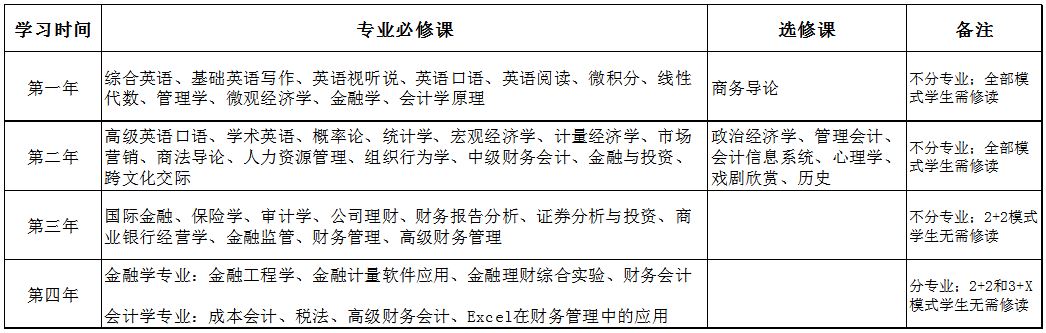 金融学和会计学专业采用中外联合培养人才培养模式,可选以下培养模式: