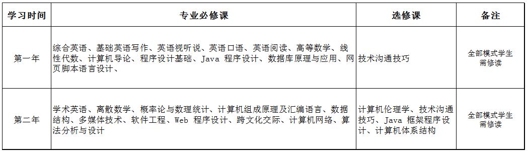 计算机科学与技术专业在国内学习阶段主要设置计算机科学与技术基本理论和实操技巧等核心课程,专业课均使用原版英文教材,全英/双语授课;在国外学习阶段,员工可选择计算机科学、数据分析、游戏开发、信息技术等计算机相关专业。