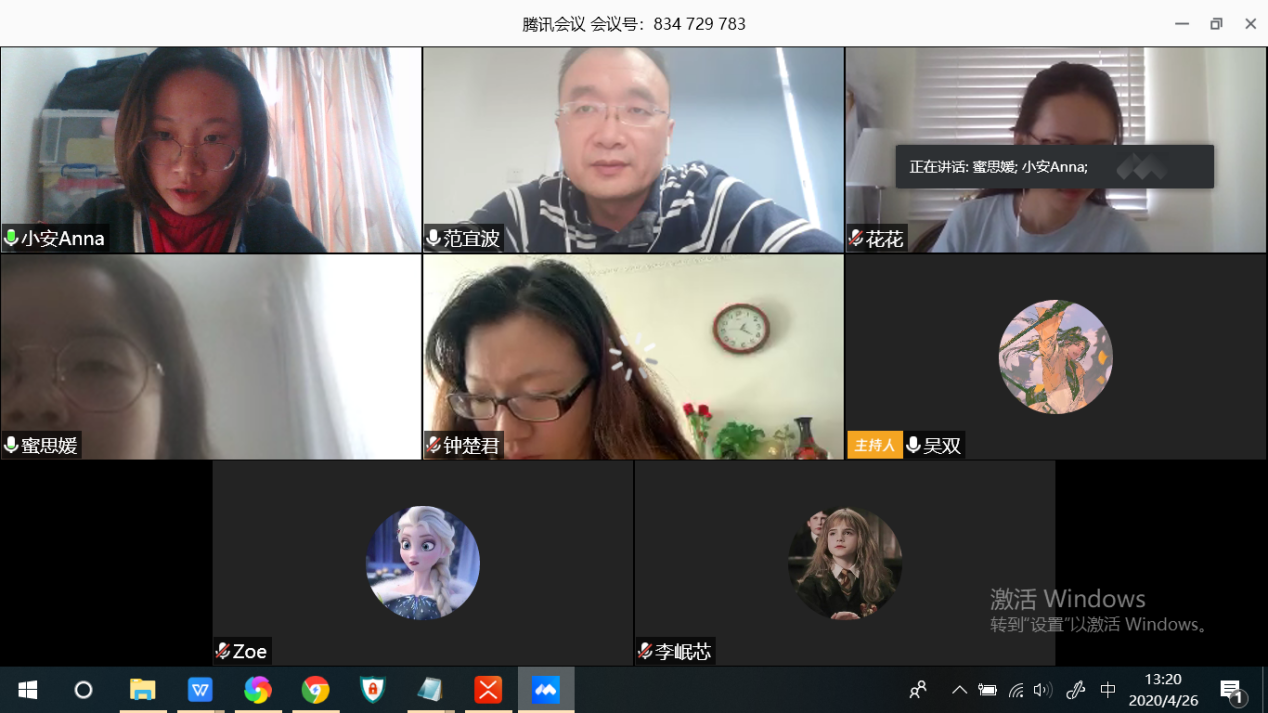 4月26日下午,云顶国际vip.888借助腾讯会议平台,举行了第三届“讲好中国故事大赛——讲好疫情防控的中国故事”大赛的参赛作品云端评审会,云顶国际vip.888经理初可佳、党总支书记范宜波、英语专任教师施志媛、何凌以及黄诣、19级辅导员钟楚君6人担任大赛评委。