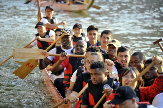 赛后,龙舟赛主办方热情邀请了公司职工们体验划龙舟。来自乌兹别克斯坦、利比里亚、尼日利亚等国的职工们纷纷请缨,在教练的带领下认真学习划桨,并登船过了一把龙舟瘾。
